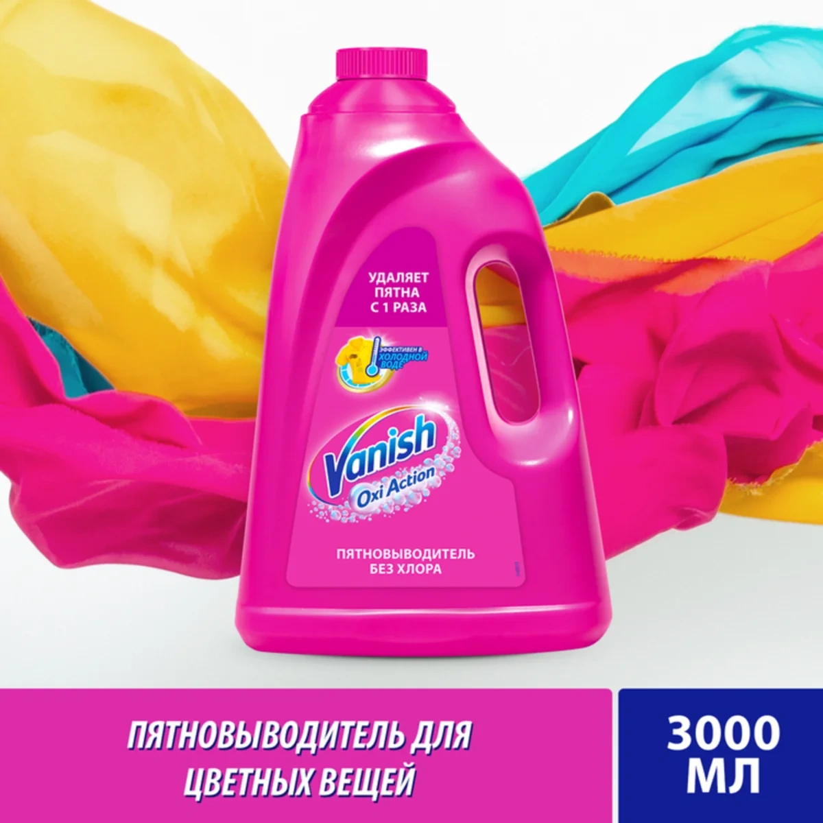 Жидкий пятновыводитель Vanish Oxi Action содержит активный кислород, который удаляет пятна и сохраняет цвет ваших вещей. Жидкий Vanish безопасен как для цветных, так и для белых вещей. Эффективен даже в холодной воде (30). Подходит для деликатных тканей - шерсти и шелка.