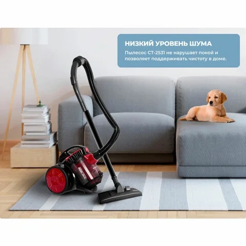 Пылесос CENTEK CT-2531 с контейнером 'циклон', 1800 Вт, мощность всасывания 350 Вт, черный/красный