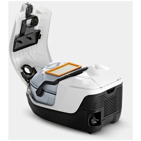 KARCHER DS 6 Plus – пылесос с водяным фильтром (аквафильтром), укомплектованный HEPA-фильтром с наибольшей среди бытовых пылесосов степенью задержания частиц (HEPA-13).