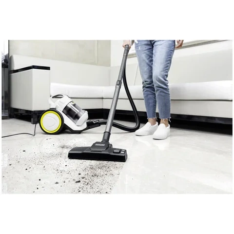 Высокая мощность без потери силы всасывания, моющийся мусоросборник, прозрачная емкость для сбора пыли, позволяющая наглядно увидеть результат – все это делает уборку с KARCHER VC 3 простой и удобной.