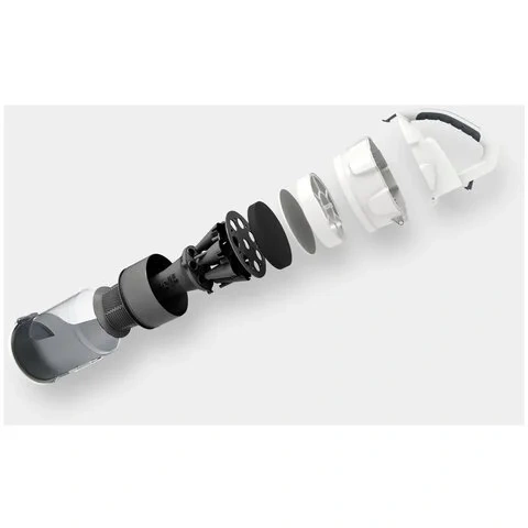 Прозрачный материал контейнера для сбора мусора обеспечивает легкий контроль уровня его заполнения. Отсутствие фильтр-мешка предотвращает распространение неприятных запахов и аллергенов.