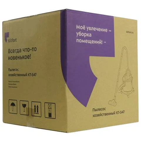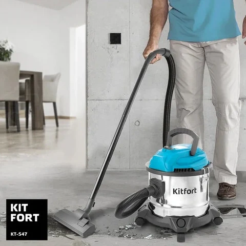 Хозяйственный пылесос KITFORT КТ-547 – это универсальный помощник для уборки любого типа. Он справляется как с сухой уборкой, так и с влажной, включая засасывание воды и мелкого мусора.