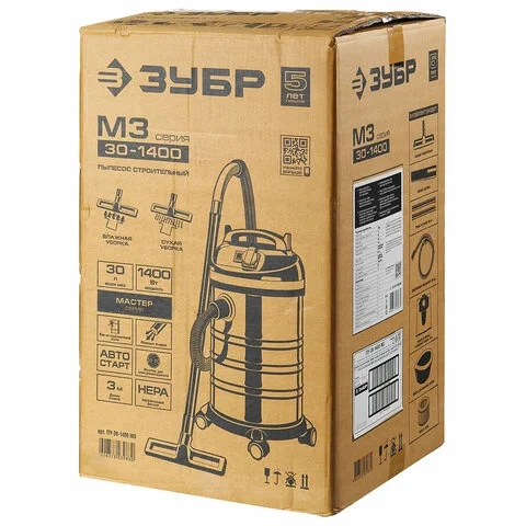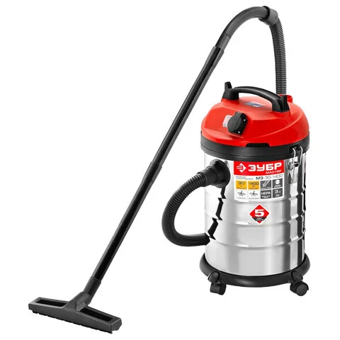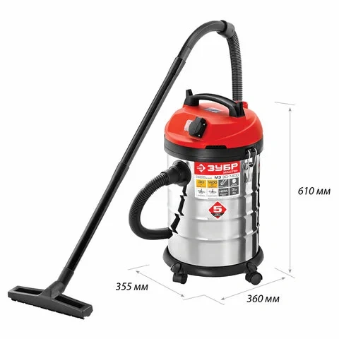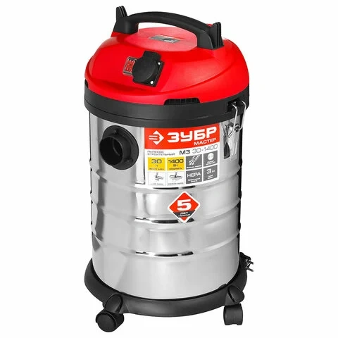 Пылесос хозяйственный ЗУБР ПУ-30-1400, 1400 Вт, сухая/влажная уборка, сила всасывания 300 Вт, бак 30