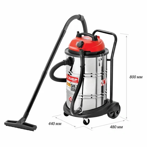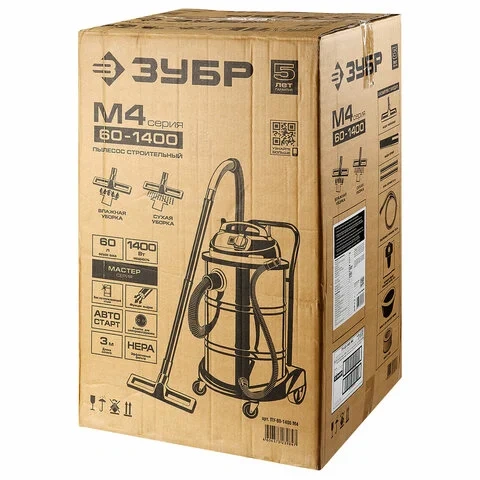 Пылесос хозяйственный ЗУБР ПУ-60-1400, 1400 Вт, сухая/влажная уборка, сила всасывания, ПУ-60-1400 М4