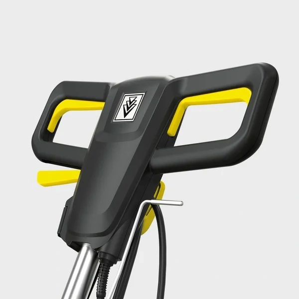 Дугообразная ручка '3 в 1' позволяет удобно переносить пылесос, быстро отсоединять и присоединять мусоросборник для опустошения. Всасывающий шланг с трубкой для подачи воды повышает комфорт при уборке. Рукоятка с функцией фиксации рычага обеспечивает продолжительную обработку больших площадей раствором чистящего средства.