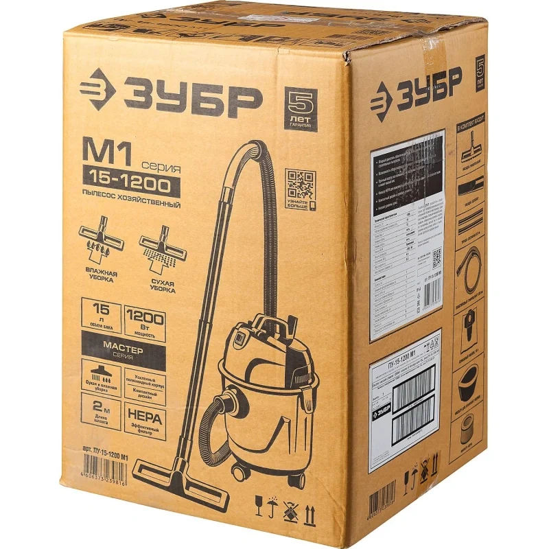 Пылесос строительный ЗУБР 1200 Вт, 15л (ПУ-15-1200 М1)