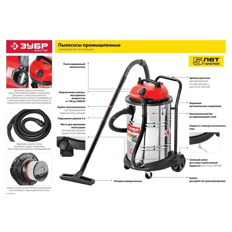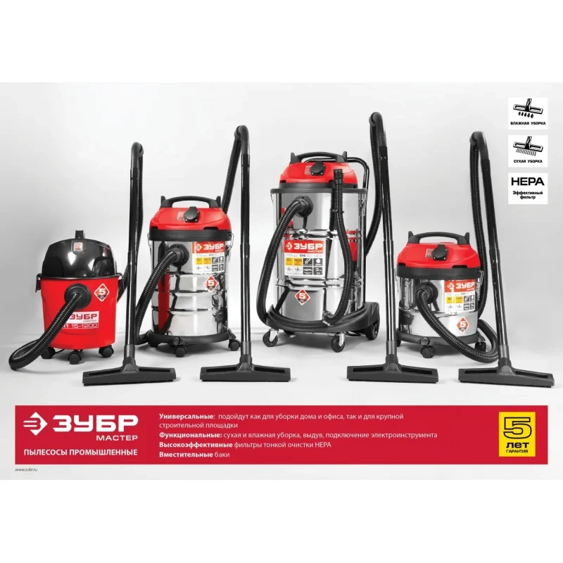 Пылесос ЗУБР разработан специально для профессиональной сухой и влажной уборки в мастерских, офисах и квартирах. Большая мощность всасывания, компактные размеры, корпус из усиленного полиамида, малый вес и низкий уровень шума делают работу с пылесосом удобной и эффективной.