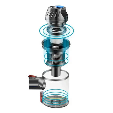 Более того, пылесос не требует сборки. Чтобы начать уборку, просто возьмите пылесос в руку и нажмите кнопку включения.