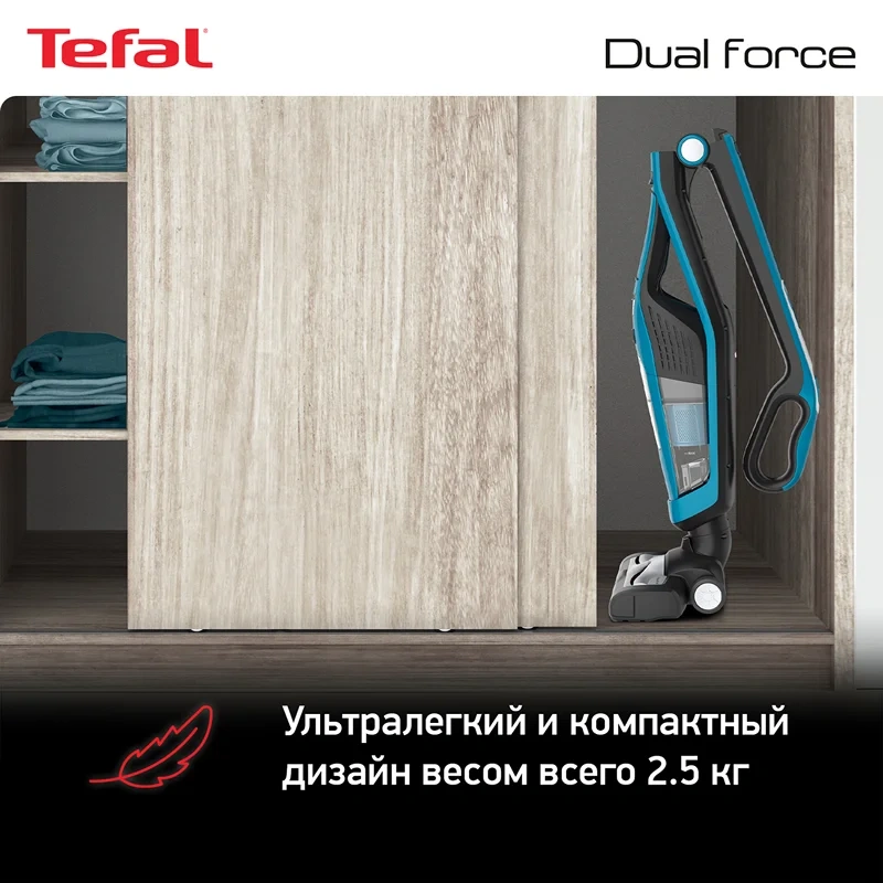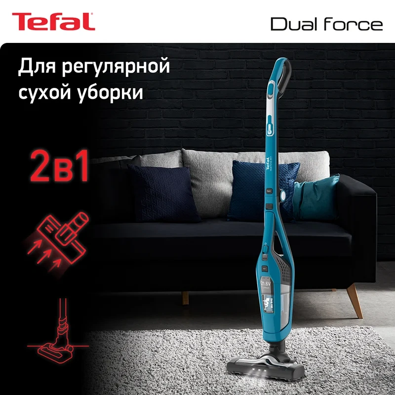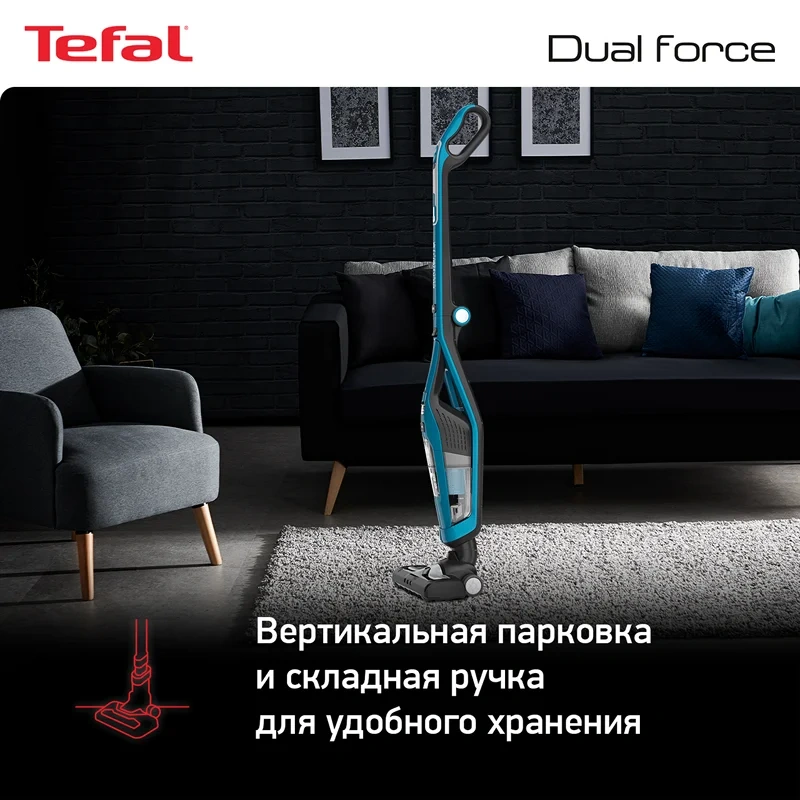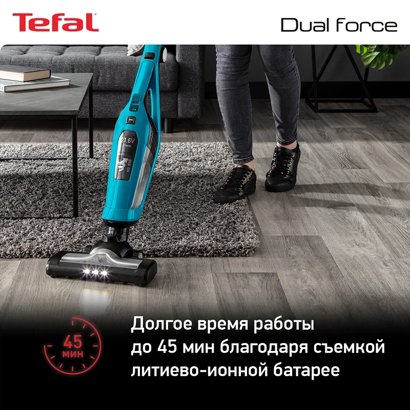 Пылесос вертикальный Tefal TY6751WO – надежный помощник, который легко и быстро приведет в порядок любое помещение. Встроенный литий-ионный аккумулятор обеспечивает автономную работу прибора без подзарядки в течение 45 минут. Этого времени достаточно для качественной сухой уборки помещений любой площади. Подзарядка устройства займет 5 часов, после чего оно снова будет готово к эксплуатации. Маневренный и компактный пылесос весит 2,5 кг. Прибор оснащен электрощеткой с LED-подсветкой, которая позволит обработать любые виды напольных покрытий, достигнет самых труднодоступных мест. Объем пылесборника устройства – 0,6 литров. Поддержка циклонной технологии обеспечивает тщательную уборку и улучшенную фильтрацию воздуха. Складная ручка позволяет компактно хранить прибор в вертикальном положении. Уход подразумевает очистку резервуара для мусора и фильтра.