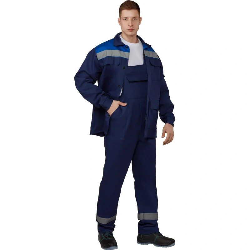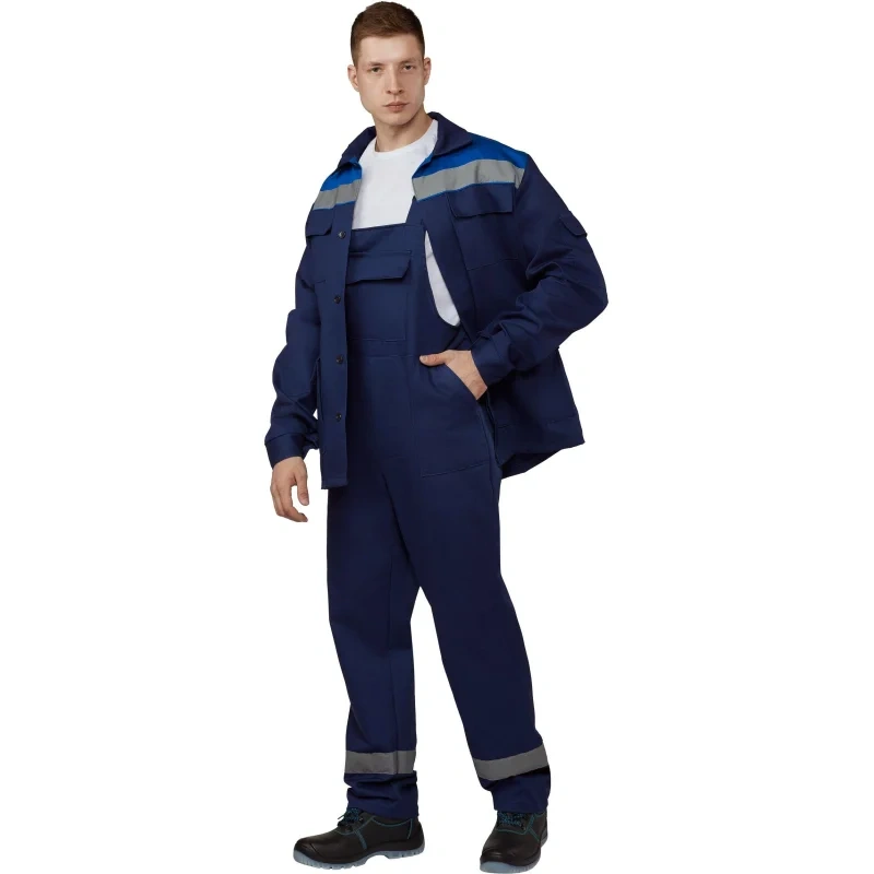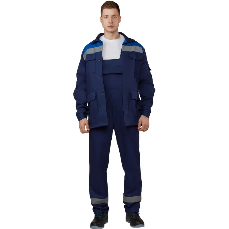 Костюм рабочий летний мужской (р.52-54) 182-188, сине-красный, с полукомбинезоном, с СОП, л20