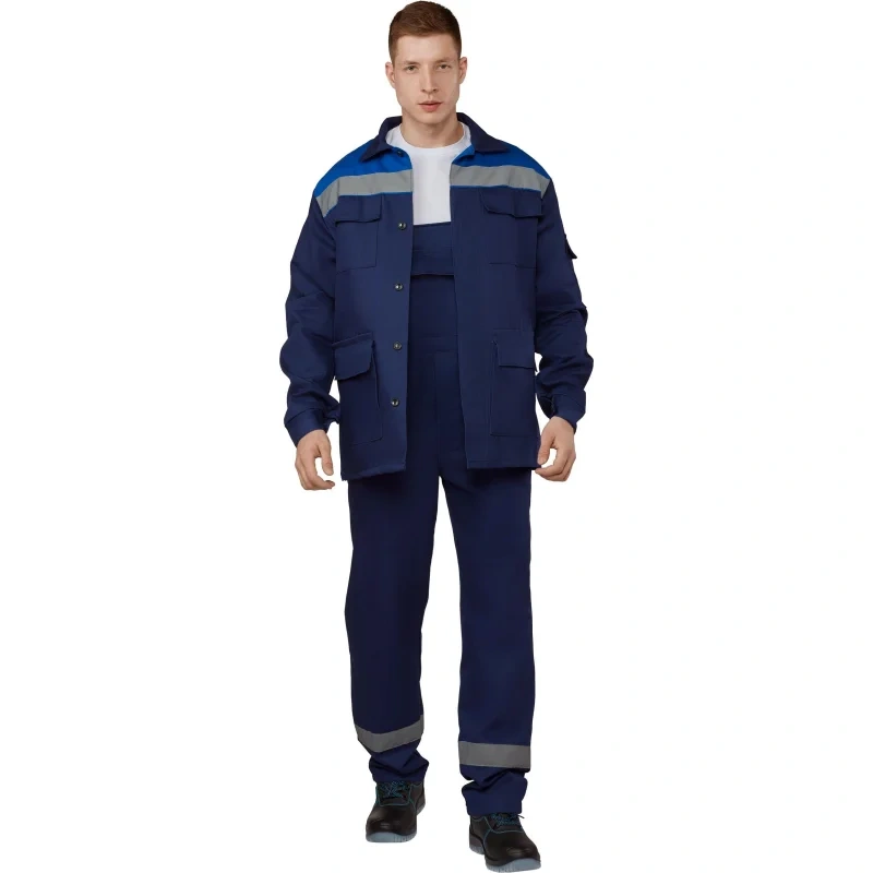Костюм рабочий летний мужской (р.56-58) 170-176, сине-красный, с полукомбинезоном, с СОП, л20