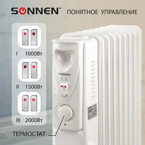 Радиатор масляный Sonnen DFS-09 9 секций, 2000Вт, белый