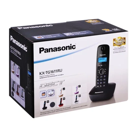 Радиотелефон Panasonic KX-TG1611RUH модель в корпусе серого цвета, представлена базовой станцией и трубкой с точечным монохромным дисплеем с голубой подсветкой. Аппарат работает в цифровом стандарте DECT, имеет удобное русифицированное меню, снабжен функциями внутренней связи, поиска трубки и автоматического определителя номера. Модель также оснащена телефонным справочником, рассчитанным на 50 номеров, и журналом входящих и исходящих вызовов. Емкости аккумулятора телефона хватает на 15 часов в режиме разговора и 170 часов в режиме ожидания.