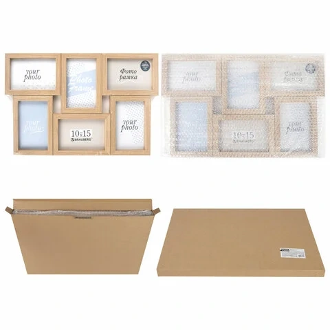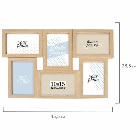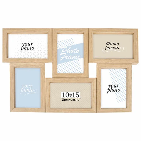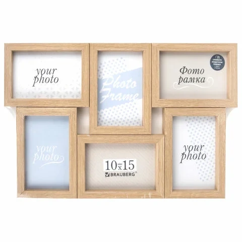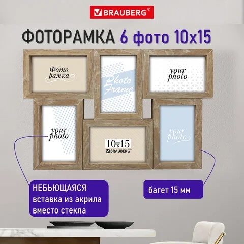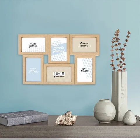 Рамка 10х15 см для 6 фото небьющаяся, багет 15 мм, МДФ, BRAUBERG 'Collage', цвет мокко, 391262