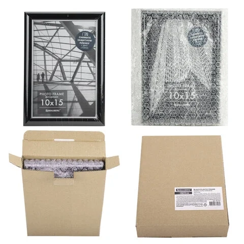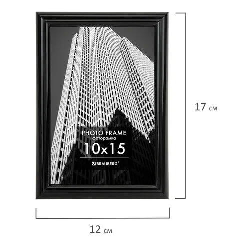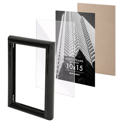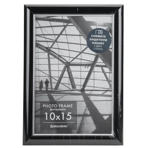 Рамка 10х15 см небьющаяся, багет 14 мм, пластик, BRAUBERG 'Original', черная, 391227
