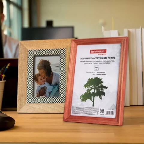Рамка 15х20 см, дерево, багет 18 мм, BRAUBERG 'Pinewood', красное дерево, стекло, подставка, 391217