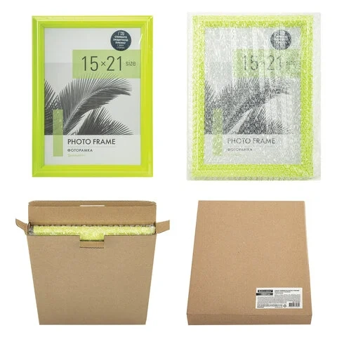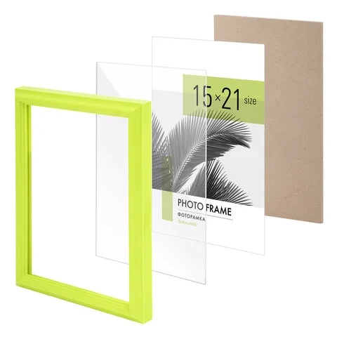 Рамка 15х21 см небьющаяся, багет 17,5 мм, пластик, BRAUBERG 'Colorful', салатовая, 391243