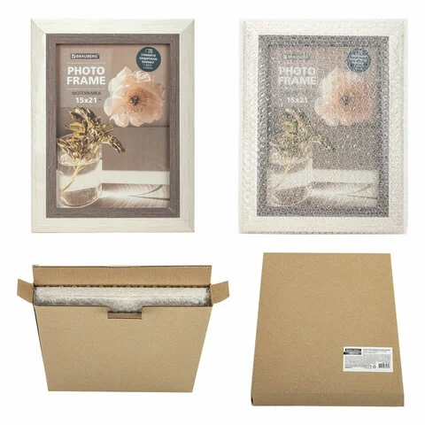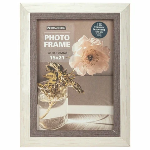 Рамка 15х21 см небьющаяся, багет 30 мм, пластик, BRAUBERG 'Lambert', слоновая кость/капучино, 391250