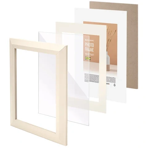 Интересной особенностью рамки является паспарту – вставка из плотного белого картона, которая создает нейтральную зону между рамкой и изображением и за счет этого дополнительно акцентирует на нем внимание. Ширина паспарту слева/справа – 3 см, верхняя и нижняя части – 3,5 см. Минималистичный багет в цвете 'слоновая кость' без лишних деталей шириной 26 мм делает рамку абсолютно универсальной для любого интерьера. Высота багета – 13 мм. Вставка из акрила вместо обычного стекла делает рамку менее хрупкой. Перед применением снимите пленку с обеих сторон экрана.