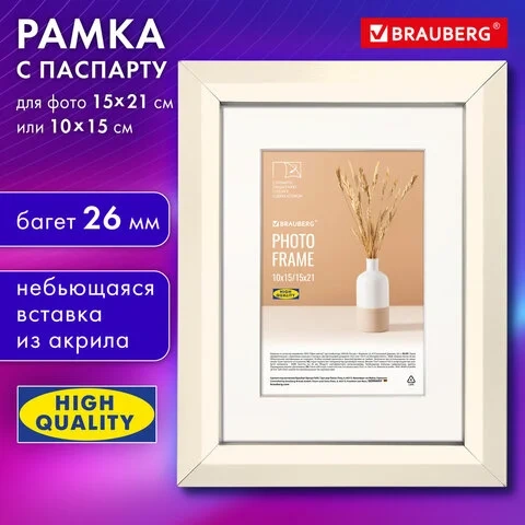 Рамка 15х21 см с паспарту 10х15 см небьющаяся, аналог IKEA, багет 26 мм, МДФ, BRAUBERG 'Zool', цвет