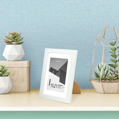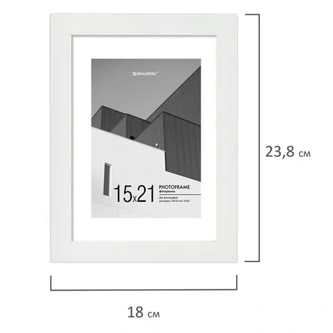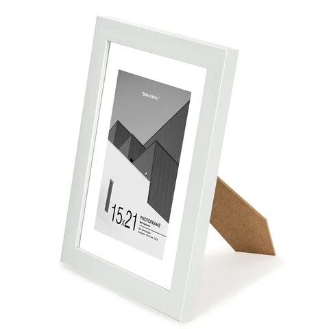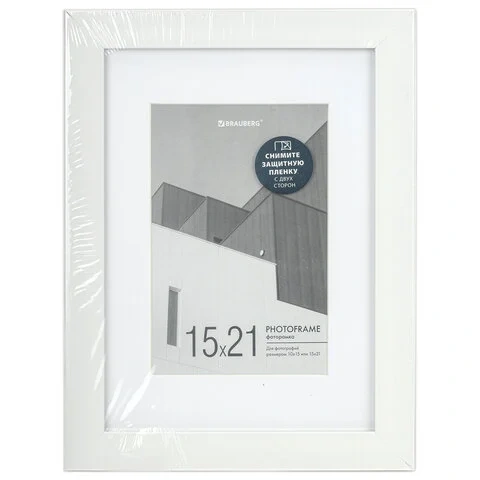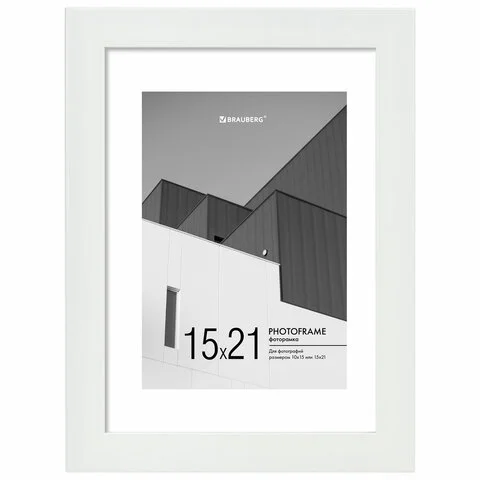 Рамка 15х21 см с паспарту 10х15 см небьющаяся, багет 20 мм пластик, BRAUBERG 'New Age', белая, 39127