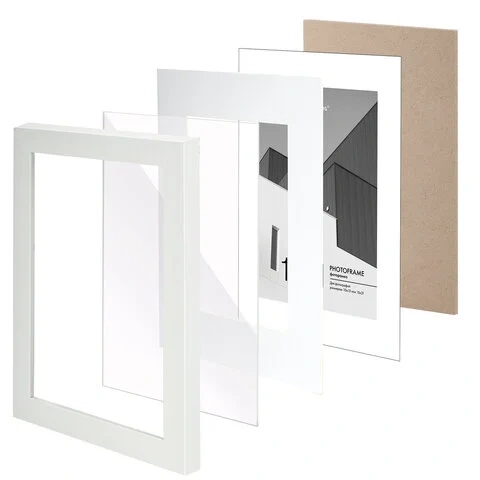 Интересной особенностью рамки является паспарту – вставка из плотного белого картона, которая создает нейтральную зону между рамкой и изображением и за счет этого дополнительно акцентирует на нем внимание. Ширина паспарту слева/справа – 3 см, верхняя и нижняя части – 3,5 см. Минималистичный белый багет без лишних деталей шириной 20 мм делает рамку абсолютно универсальной для любого интерьера. Высота багета – 15 мм. Вставка из акрила вместо обычного стекла делает рамку менее хрупкой. Перед применением снимите пленку с обеих сторон экрана.