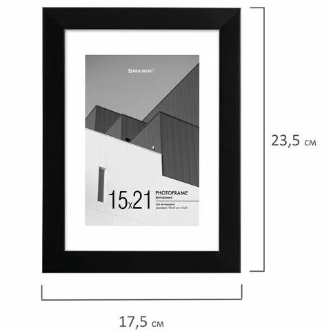 Рамка 15х21 см с паспарту 10х15 см небьющаяся, багет 20 мм, пластик, BRAUBERG 'New Age', черная, 391