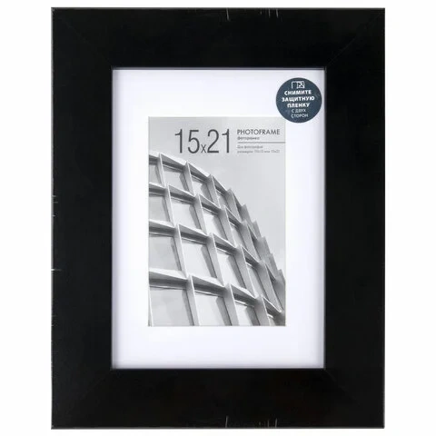 Рамка 15х21 см с паспарту 10х15 см небьющаяся, багет 40 мм, МДФ, BRAUBERG 'Malcolm', черная, 391268