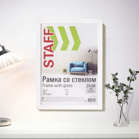 Рамка 21х30 см белая STAFF 'Grand', багет 18 мм, стекло, МДФ, 391207
