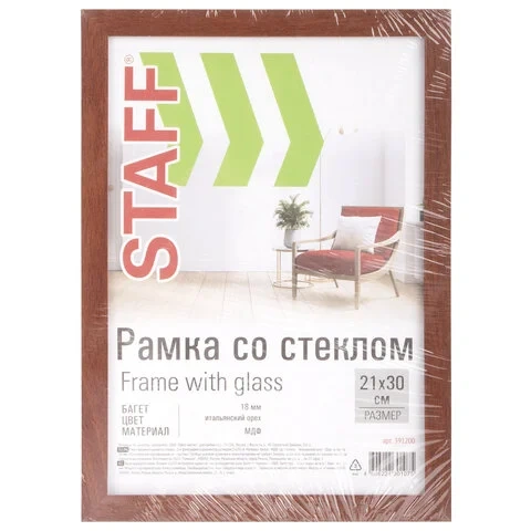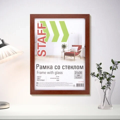 Рамка 21х30 см 'итальянский орех' STAFF 'Grand', багет 18 мм, стекло, МДФ, 391200