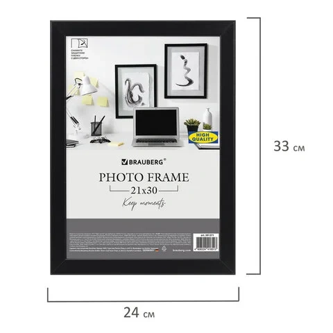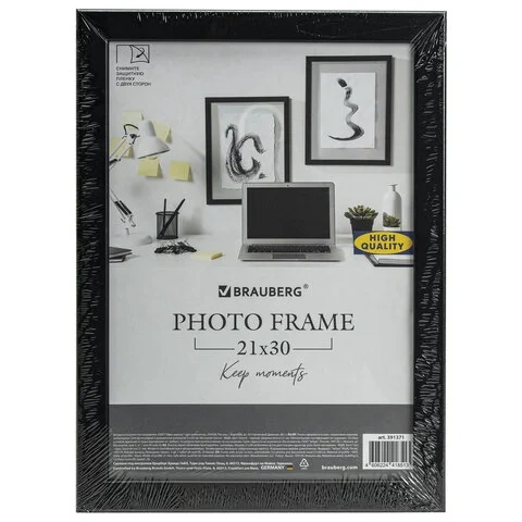 Рамка 21х30 см небьющаяся, аналог IKEA, багет 21 мм, МДФ, BRAUBERG 'Idea', черная, 391371
