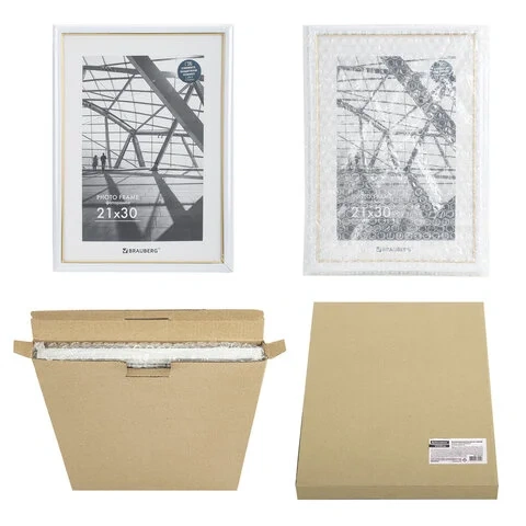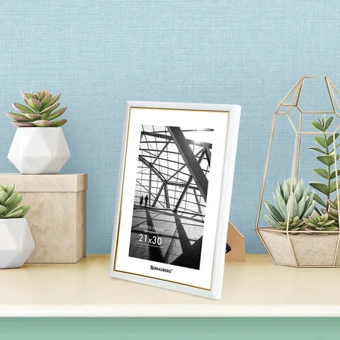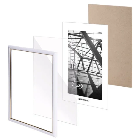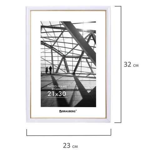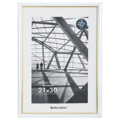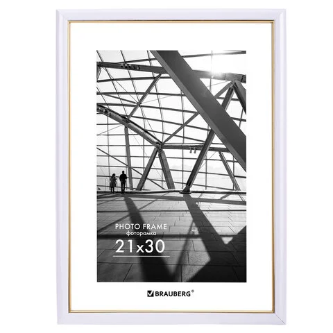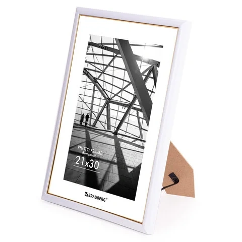 Рамка 21х30 см небьющаяся, багет 14,6 мм, пластик, BRAUBERG 'Original Line', белая/золото, 391236