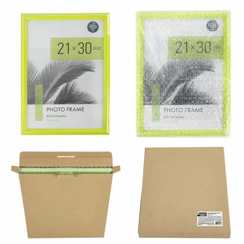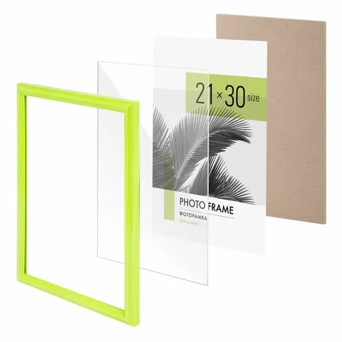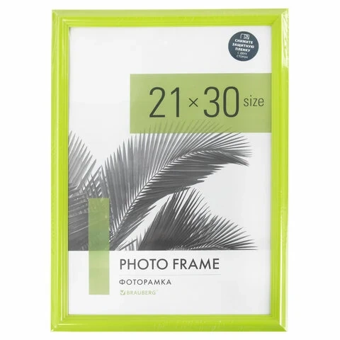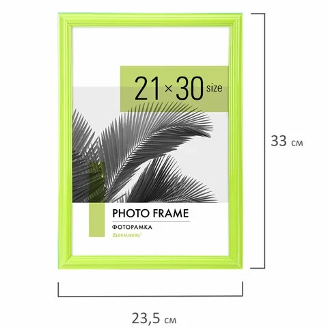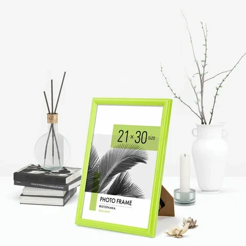 Рамка 21х30 см небьющаяся, багет 17,5 мм, пластик, BRAUBERG 'Colorful', салатовая, 391244
