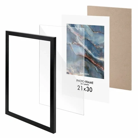 Рамка 21х30 см небьющаяся, КОМПЛЕКТ 4 шт., багет 16 мм МДФ, BRAUBERG 'Basic', черная, 391259