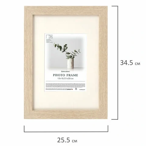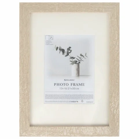 Рамка 21х30 см с паспарту 13х18 см, небьющаяся, багет 26 мм, МДФ, BRAUBERG 'Ambassador', цвет дуб, 3