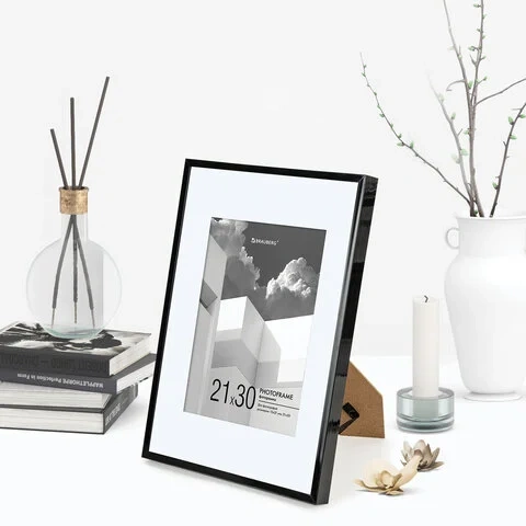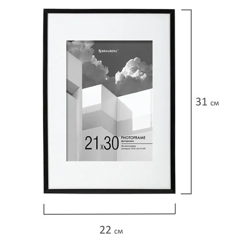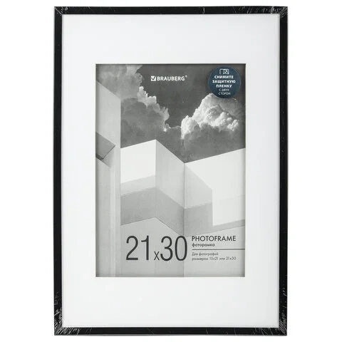 Рамка 21х30 см с паспарту 15х21 см небьющаяся, багет 5 мм, пластик, BRAUBERG 'Smart', черная, 391280