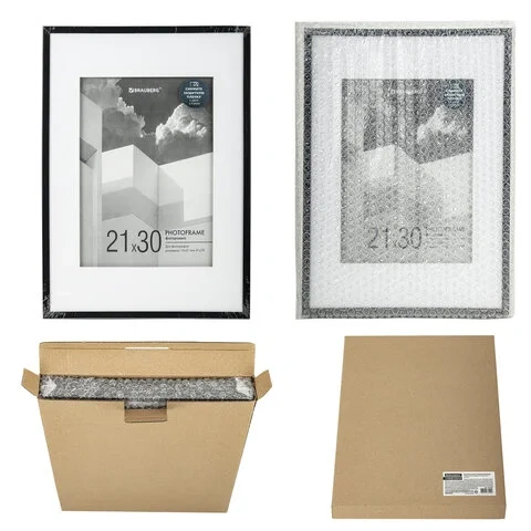 Задняя панель выполнена из прочного МДФ. Рамка поставляется в термоусадочной пленке. Для дополнительной защиты от сколов и потертостей она упакована в пупырчатую пленку и индивидуальный трехслойный гофрокороб.
