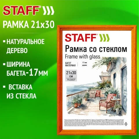 Рамка 21х30 см со стеклом, багет 17 мм, дерево, STAFF 'Classic', цвет янтарь, 391362