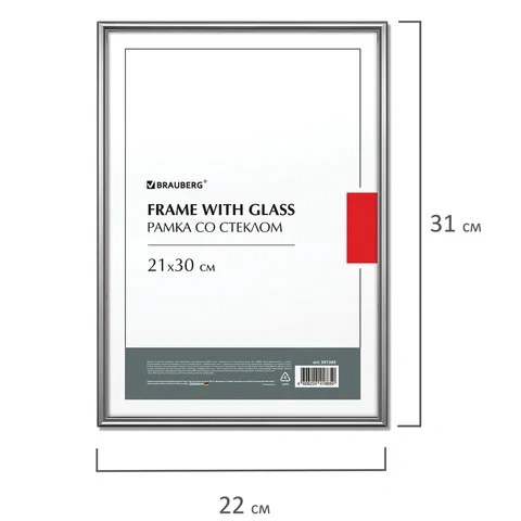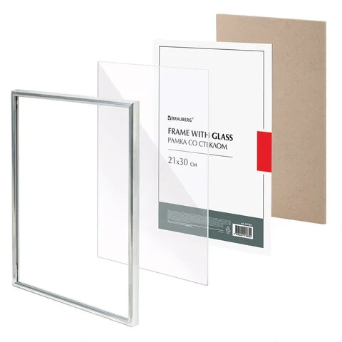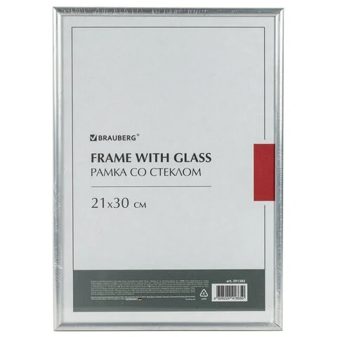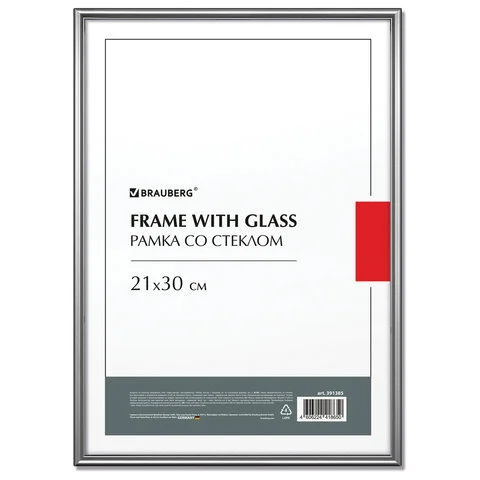Рамка 21х30 см со стеклом, багет 8 мм, МЕТАЛЛ, BRAUBERG 'Blade', серебристая, 391385