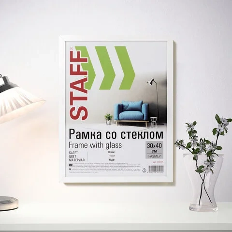 Рамка 30х40 см, белая STAFF 'Grand', багет 18 мм, стекло, МДФ, 391195