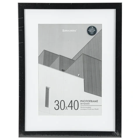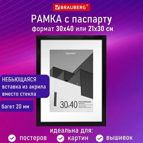 Рамка 30х40 см с паспарту 21х30 см небьющаяся, багет 20 мм, пластик, BRAUBERG 'New Age', черная, 391