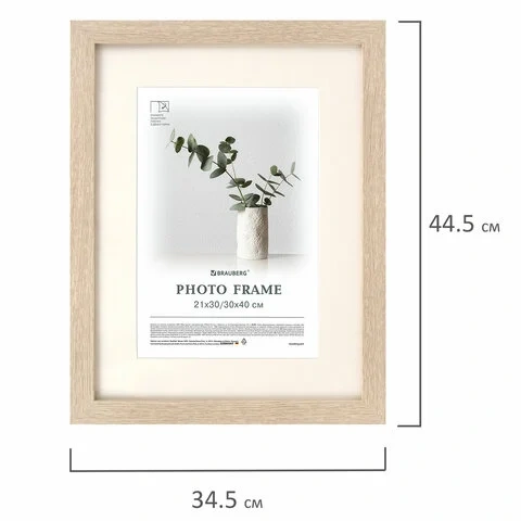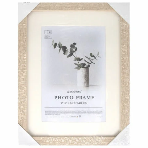 Рамка 30х40 см с паспарту 21х30 см, небьющаяся, багет 26 мм, МДФ, BRAUBERG 'Ambassador', цвет дуб, 3