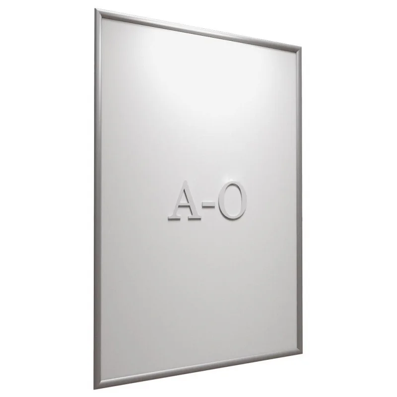 Настенная клик рамка из анодированного алюминиевого профиля 25 мм, формата А0, укомплектованы жестким задником из сотового полипропилена 2 мм и защитным прозрачным вкладыш из ПВХ 0,5 мм антиблик.