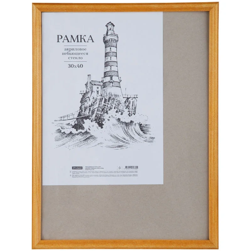 Рамка деревянная 30*40см, OfficeSpace, №1, акриловое небьющееся стекло, янтарь