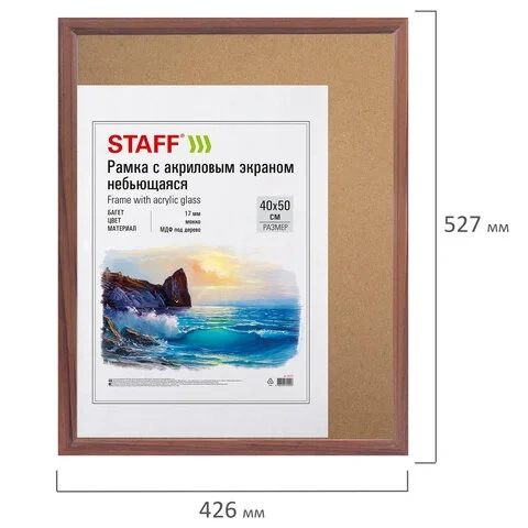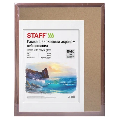 Рамка НЕБЬЮЩАЯСЯ 40х50 см, МДФ под дерево, багет 17 мм, мокко, акриловый экран, STAFF 'Carven', 3912