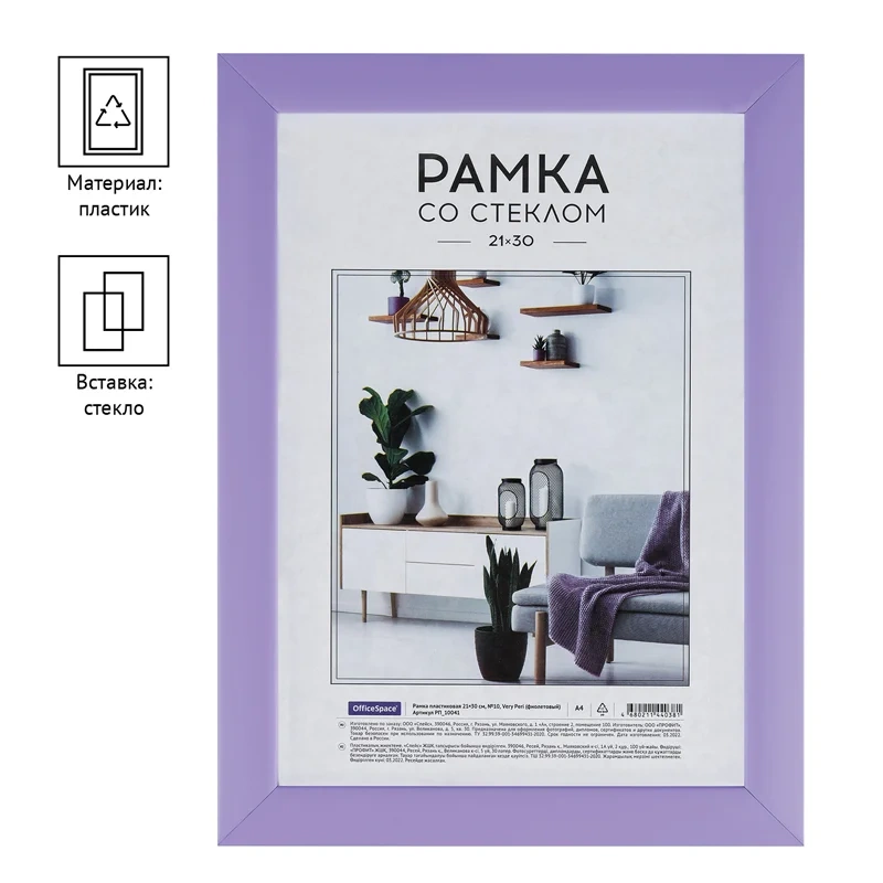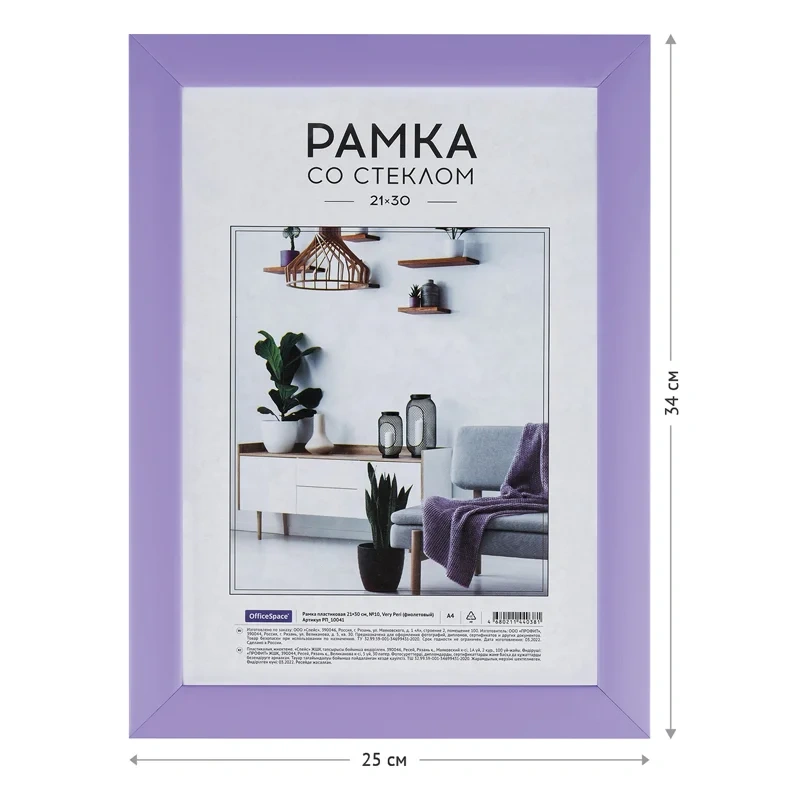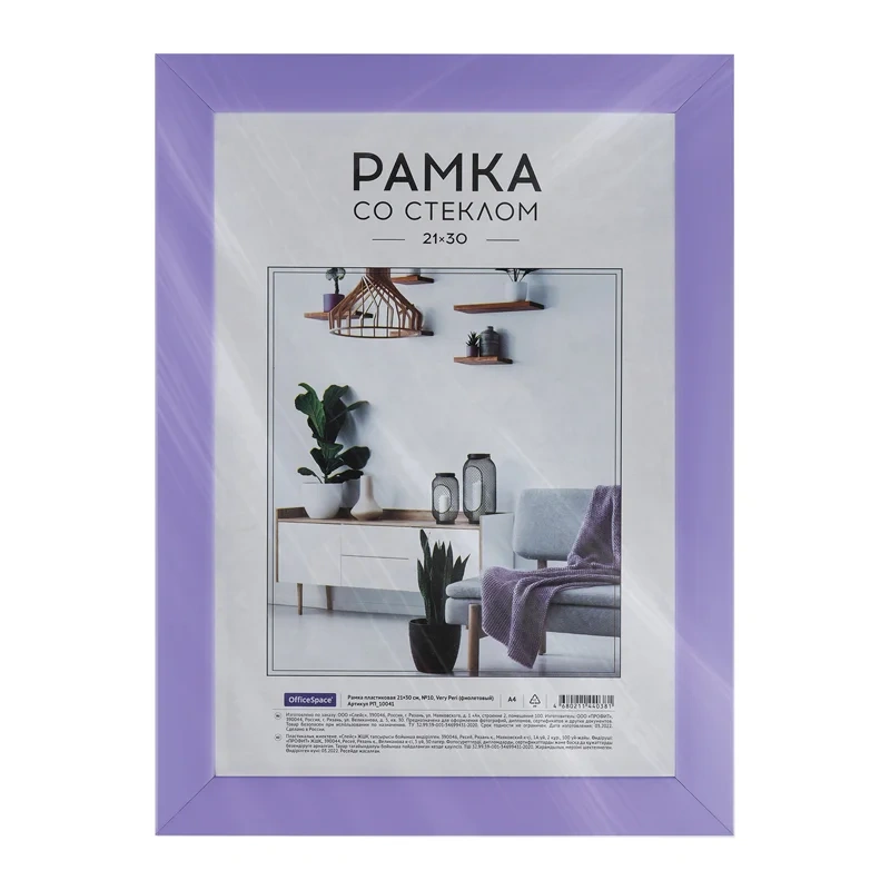 Рамка пластиковая 21*30см, OfficeSpace, №10, Very Peri (фиолетовый)
