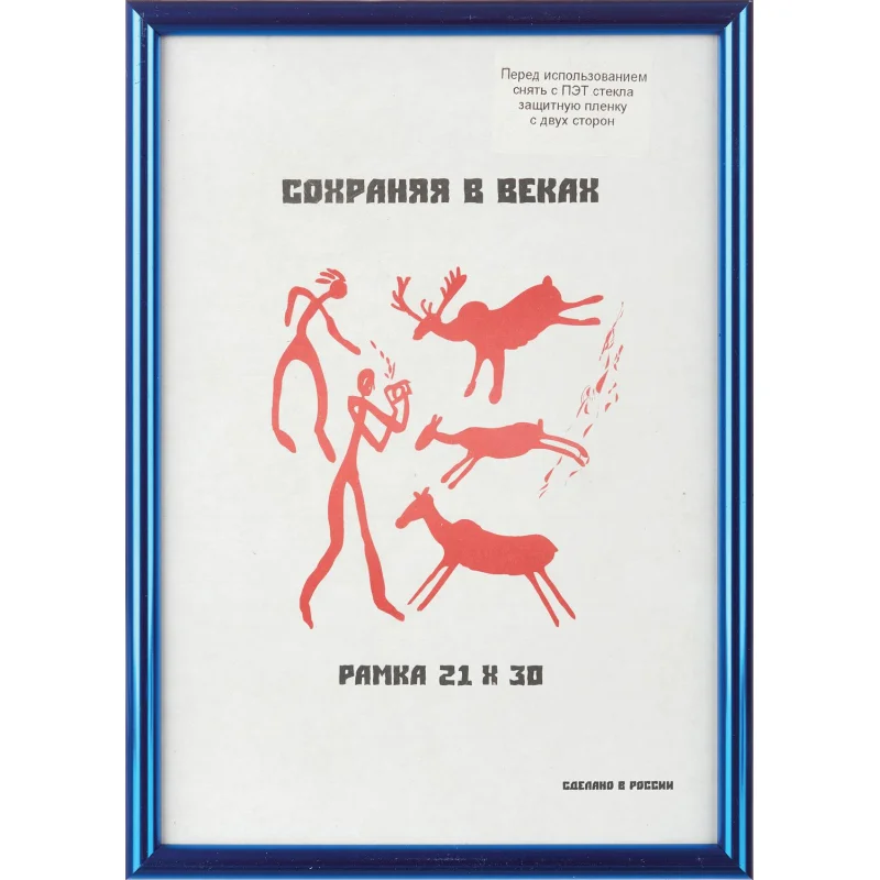 Рамка пластиковая 21x30 (A4) Синий металлик, с пластиком