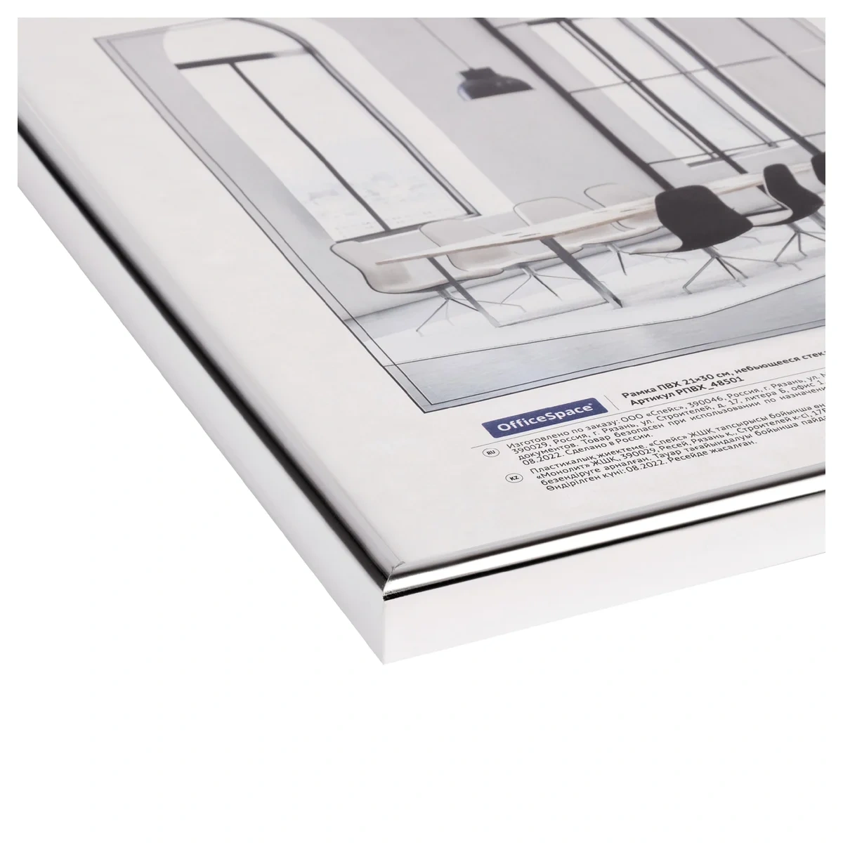 Рамка ПВХ 21*30см, OfficeSpace, небьющееся стекло, серебро