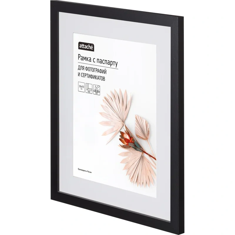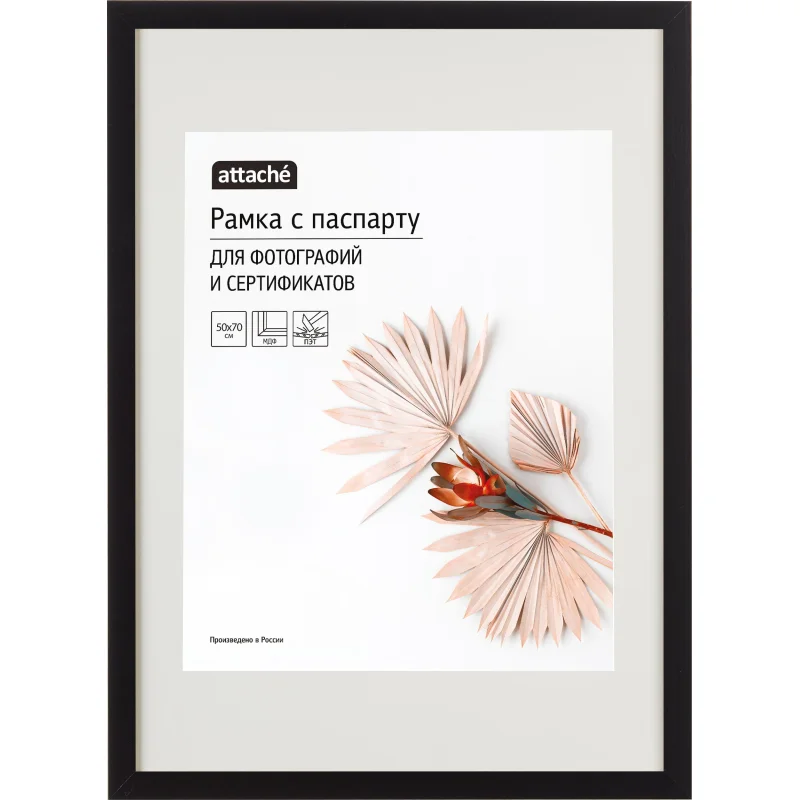 Рамка с паспарту Комус (Attache) 50×70 см МДФ багет 18 мм черная