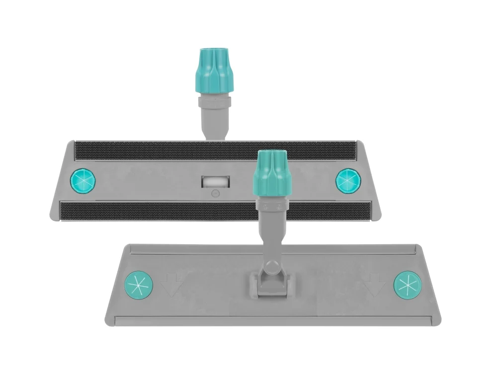 Плоская система подметания с рамой со стретч-лентой, предназначенная для использования либо предварительно пропитанной, либо пропитываемой по мере необходимости через станцию увлажнения или с рукоятками с резервуаром.